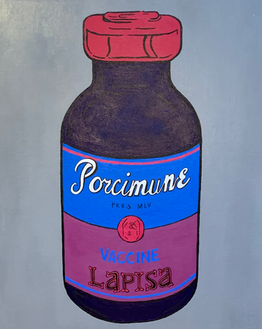 Paintings inspired by the work The Campbell´s Soup Cans, 1962 by the American artist Andy Warhol and by the Porcimune vaccine packaging from Lapisa. (2024)